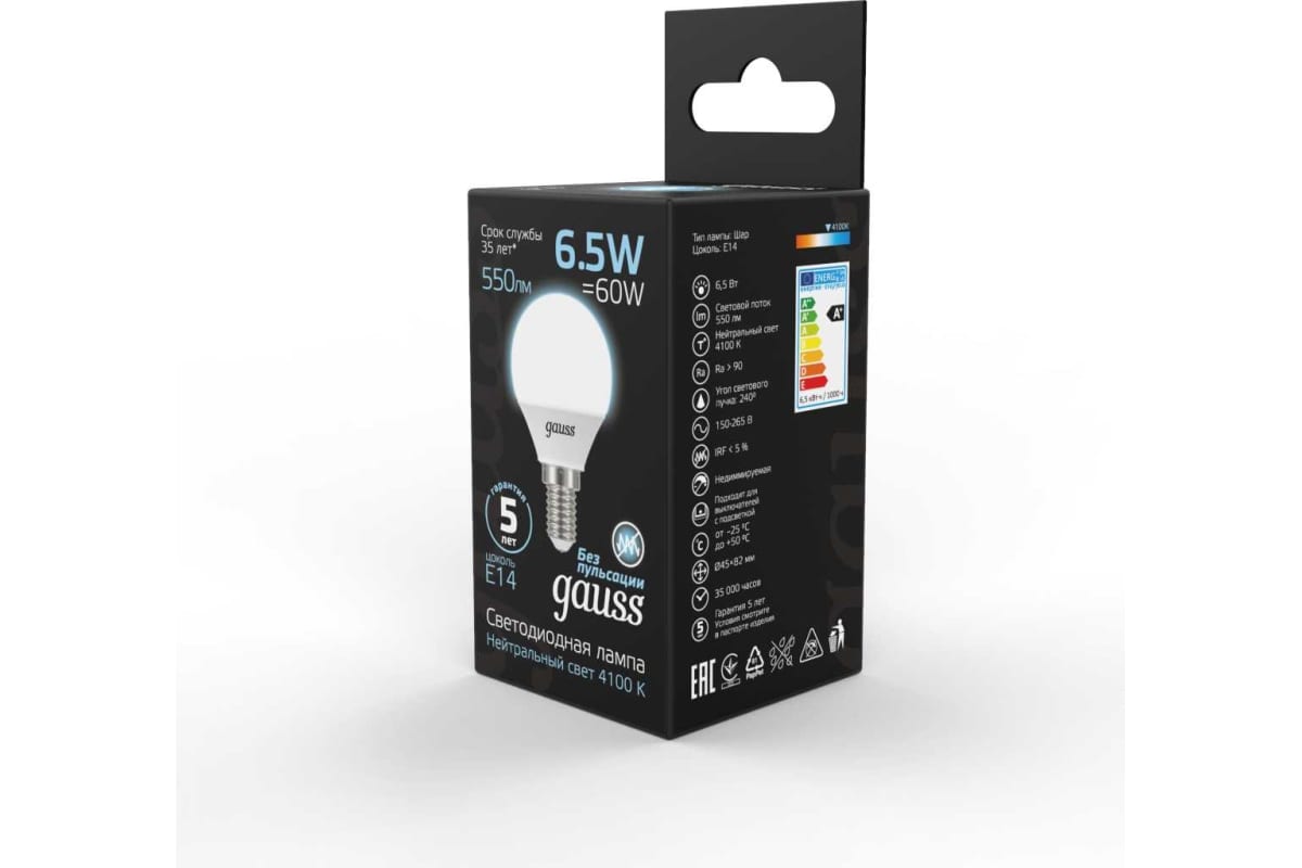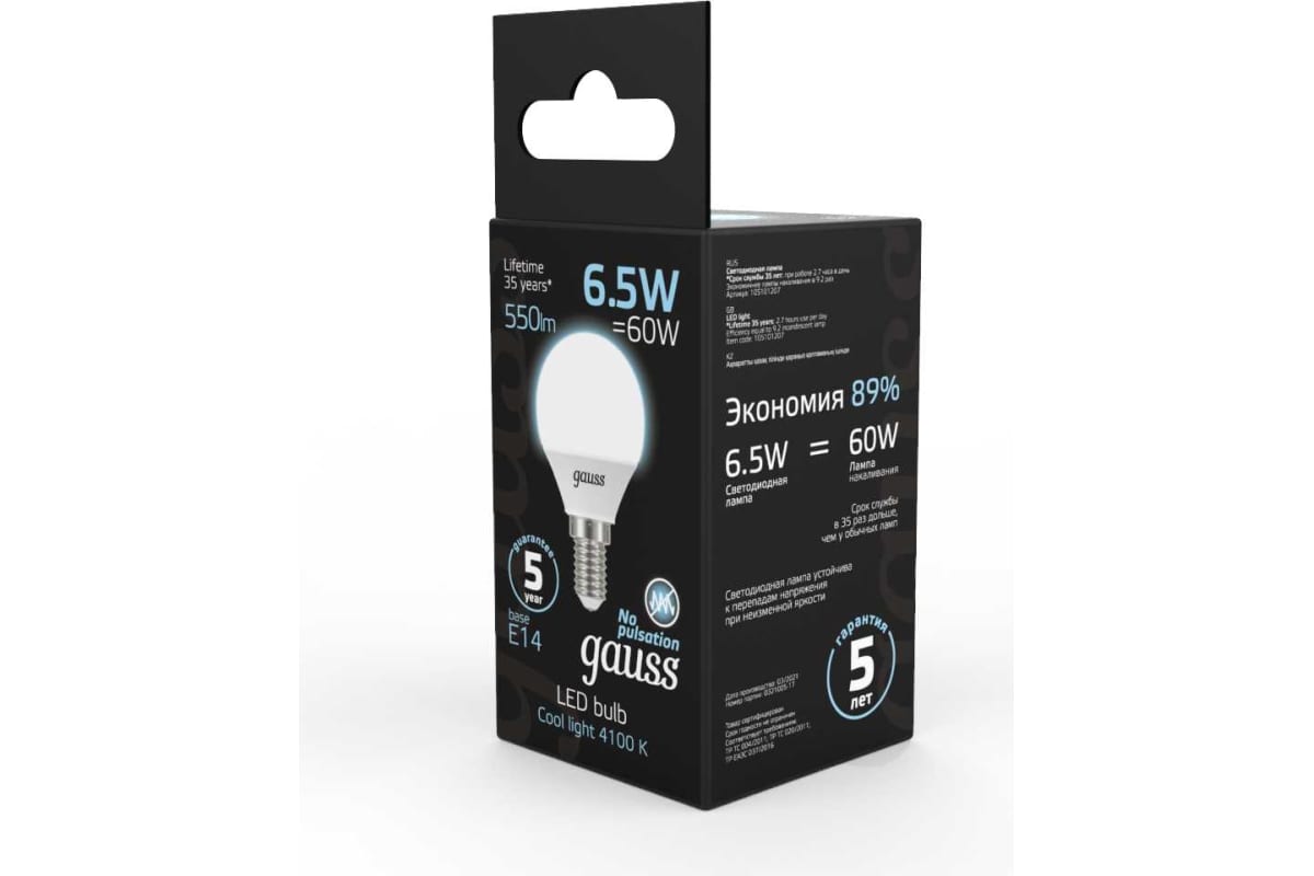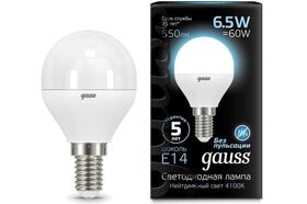 Технические характеристики Gauss LED Globe E14, 6.5W, 100-240 В, 4100K 105101207