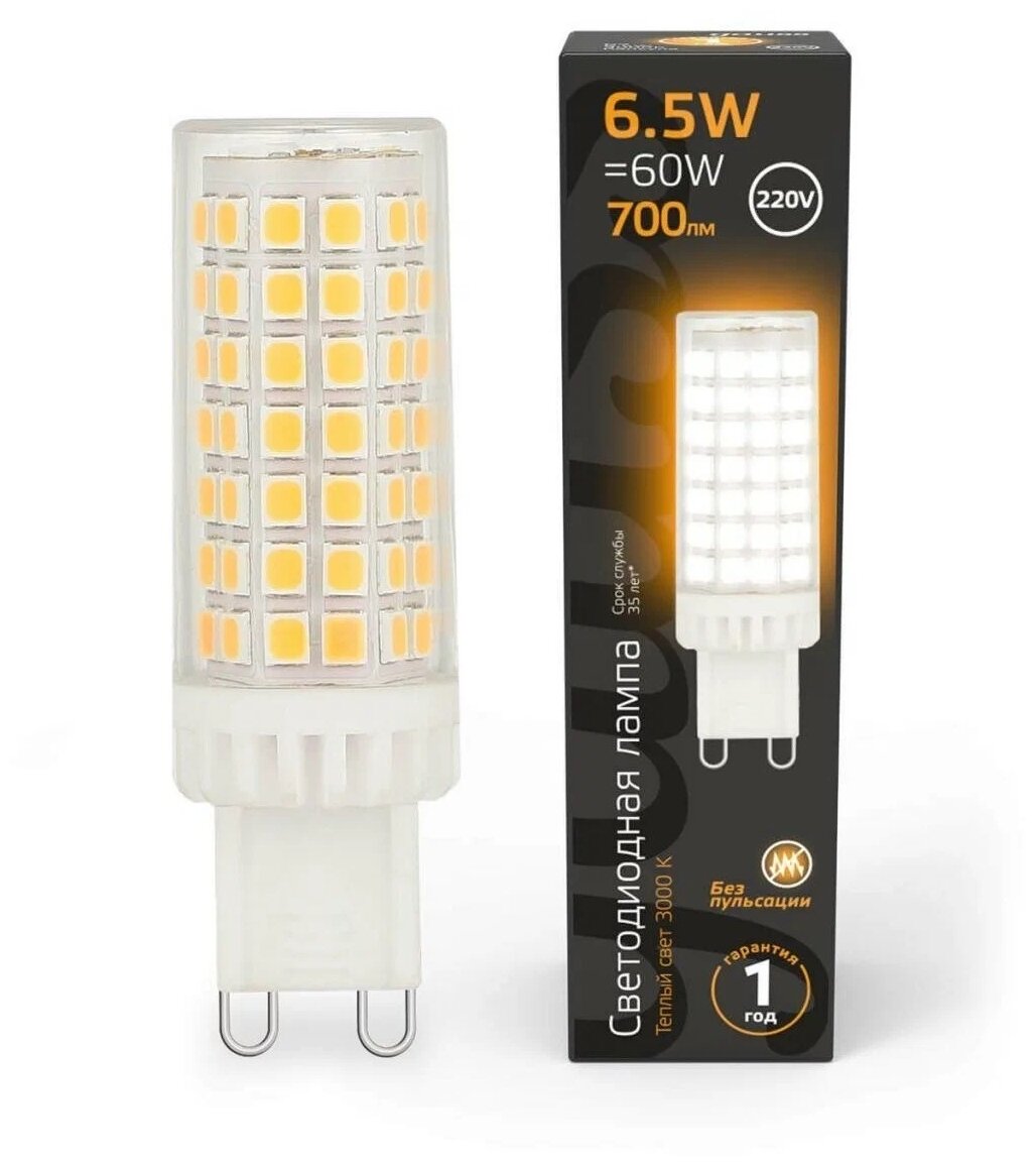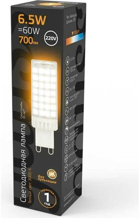 Лампа Gauss G9, AC185-265V, 6W, 770lm, 3000K, керамика, LED 107309106 - идеальная альтернатива устаревшим галогенным лампам для установки в люстры и точечные светильники.