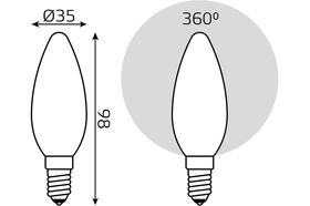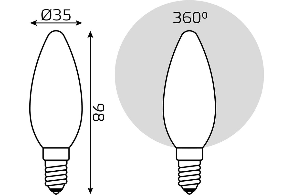 Технические характеристики Gauss Filament свеча, 9W, 590lm, 3000К, Е14, milky, LED 103201109