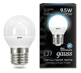 Технические характеристики Gauss LED Шар E27 9.5W 950lm 4100K 105102210