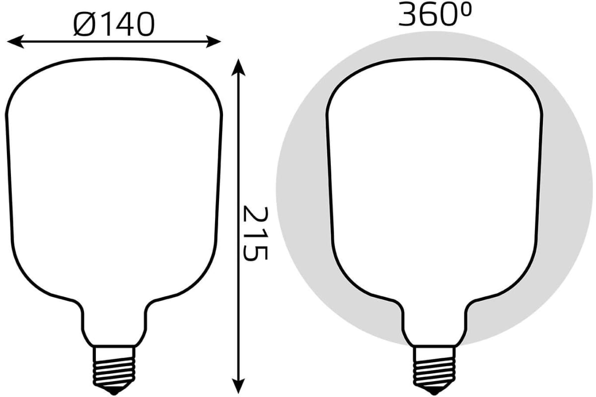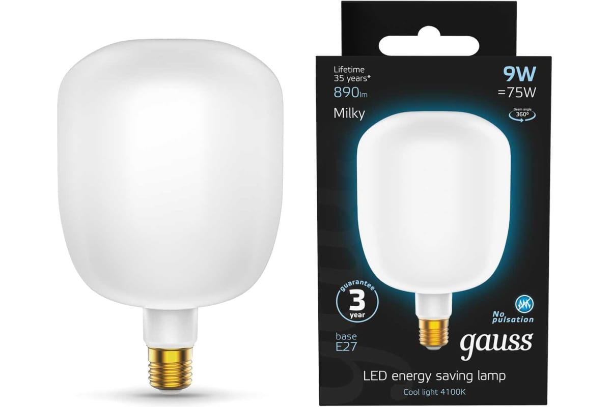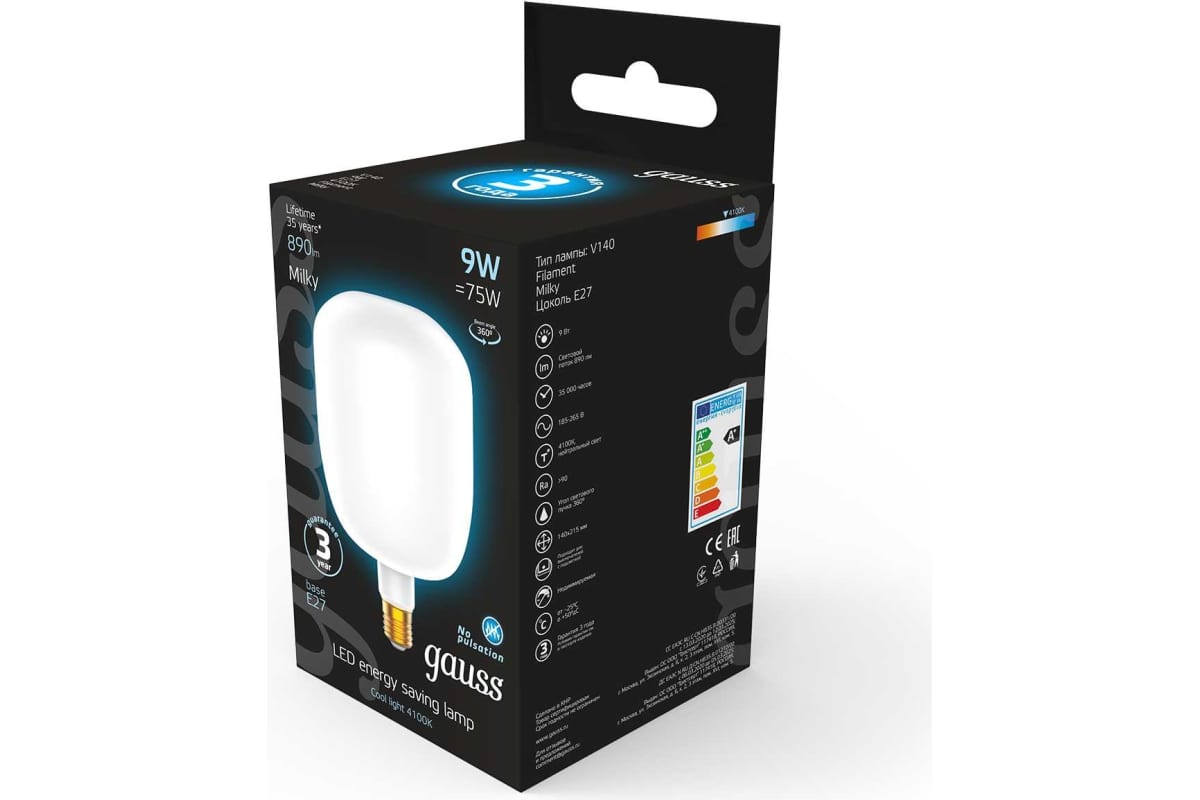 Технические характеристики Gauss Filament V140, 9W, 890lm, 4100К, Е27, milky, LED 1015802209