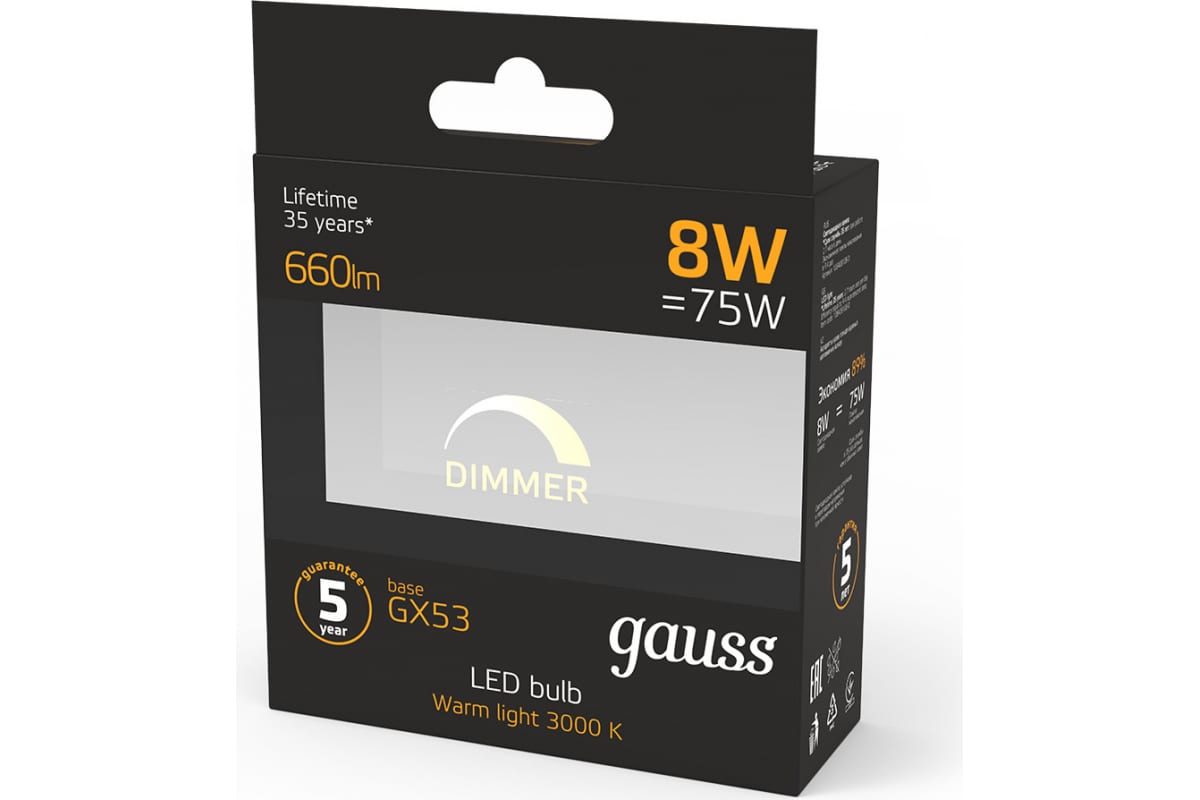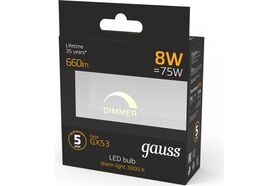 Технические характеристики Gauss LED GX53 8W 660lm 3000K 108408108-D