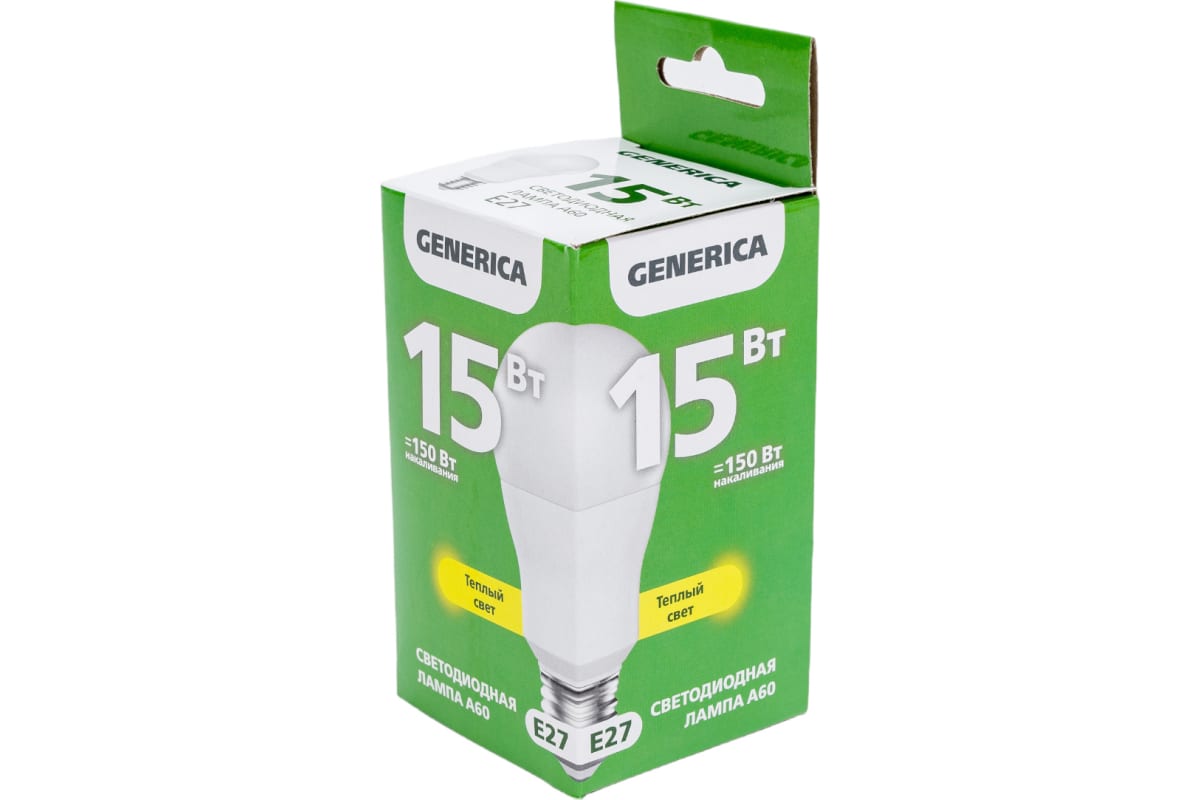 Технические характеристики GENERICA A60 груша 15Вт 230В 3000К E27 LL-A60-15-230-30-E27-G