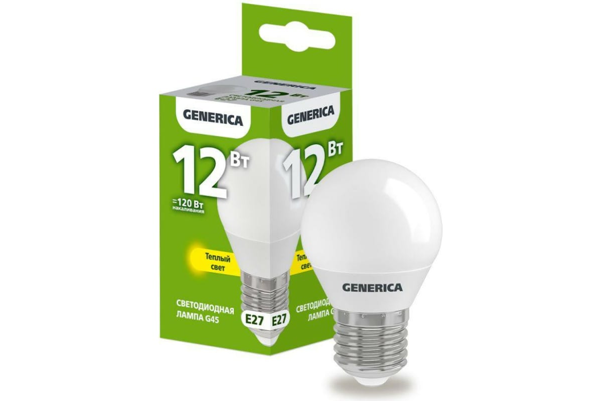 Технические характеристики GENERICA G45 шар 12Вт 230В 3000К E27 LL-G45-12-230-30-E27-G