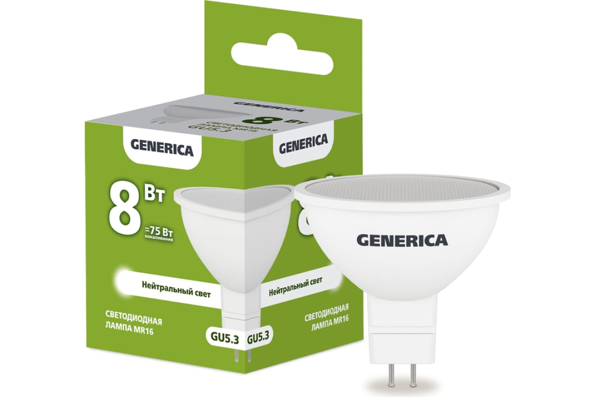 Технические характеристики GENERICA MR16 софит 8Вт 230В 4000К GU5.3 LL-MR16-08-230-40-GU5-G