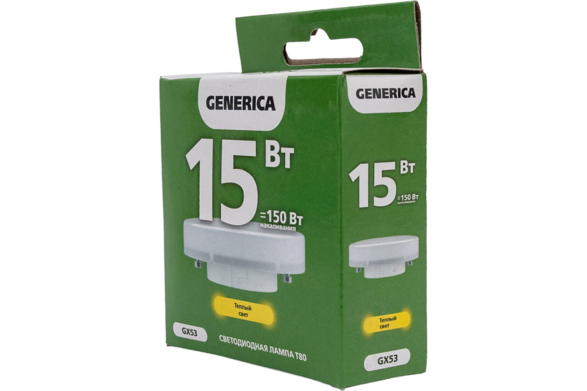 Технические характеристики GENERICA T80 таблетка 15Вт 230В 3000К GX53 LL-T80-15-230-30-GX53-G
