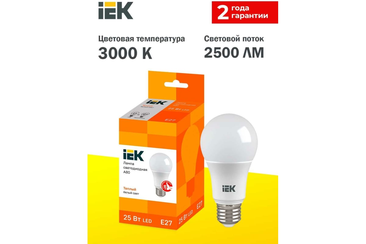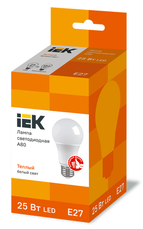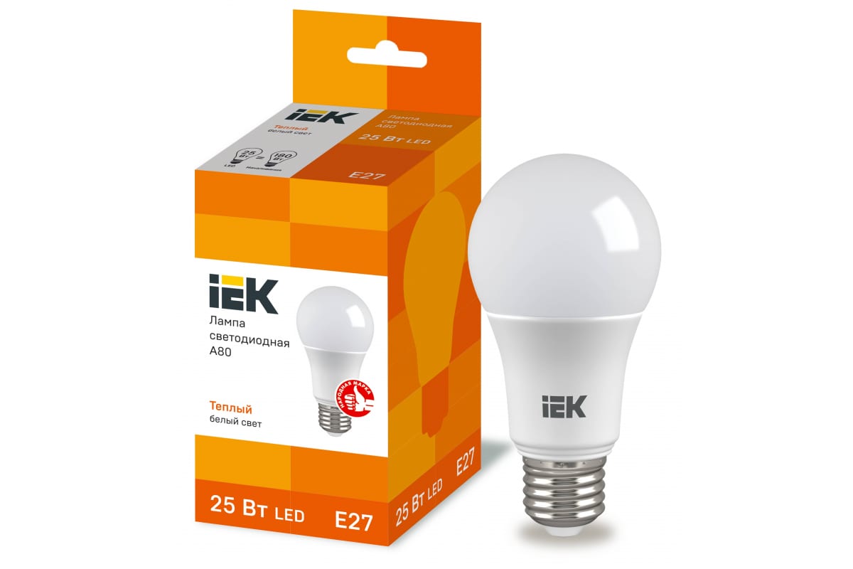 Лампа IEK LED A80 шар 25Вт 230В 3000К E27 LLE-A80-25-230-30-E27 является современным источником света и применяется в осветительных приборах, как альтернативные галогенным лампам с цоколем GU5.3, GU10 и лампам накаливания с цоколем Е14, Е27 источники света.