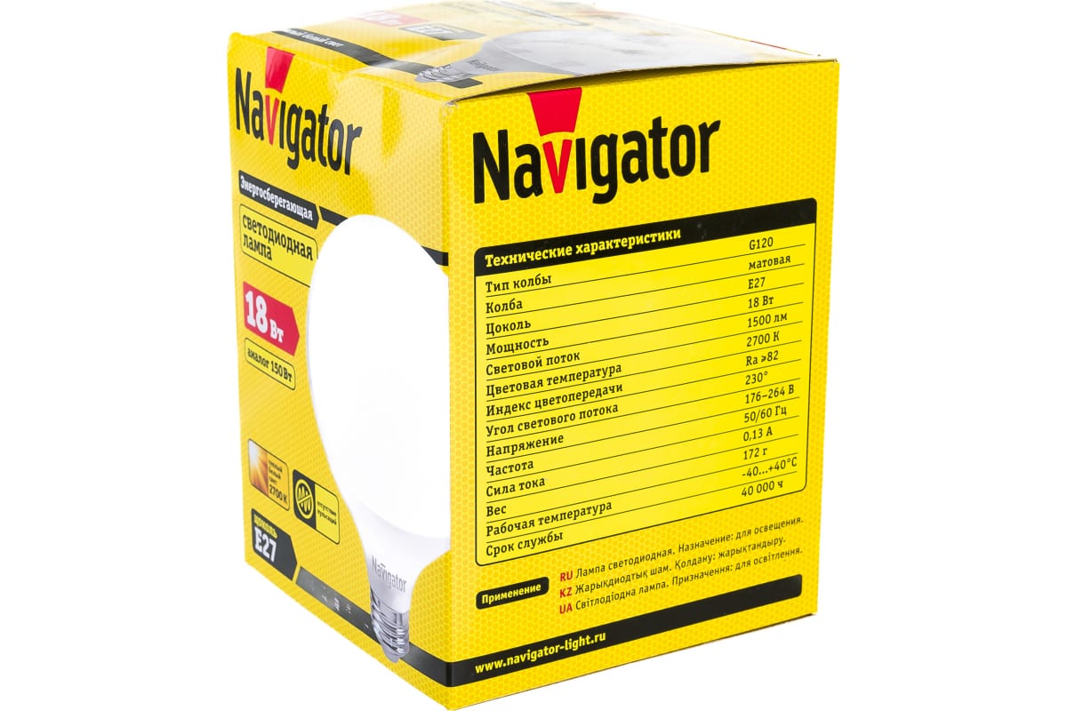 Технические характеристики Navigator NLL-G120-18-230-2.7K-E27 14164
