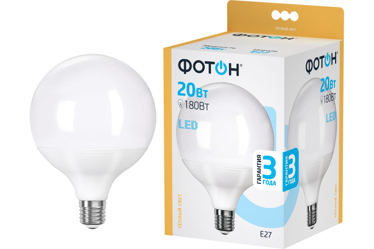 Технические характеристики ФОТОН LED G120 20W E27 3000K 23950