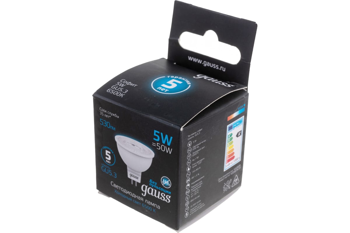 Технические характеристики Gauss MR16 5W 530lm 6500K GU5.3 LED 101505305
