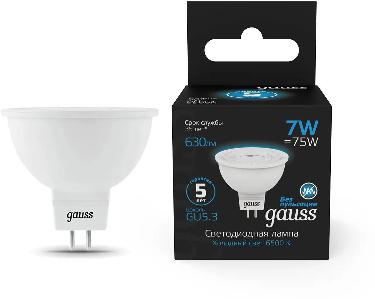 Технические характеристики Gauss MR16 7W 630lm 6500K GU5.3 LED 101505307