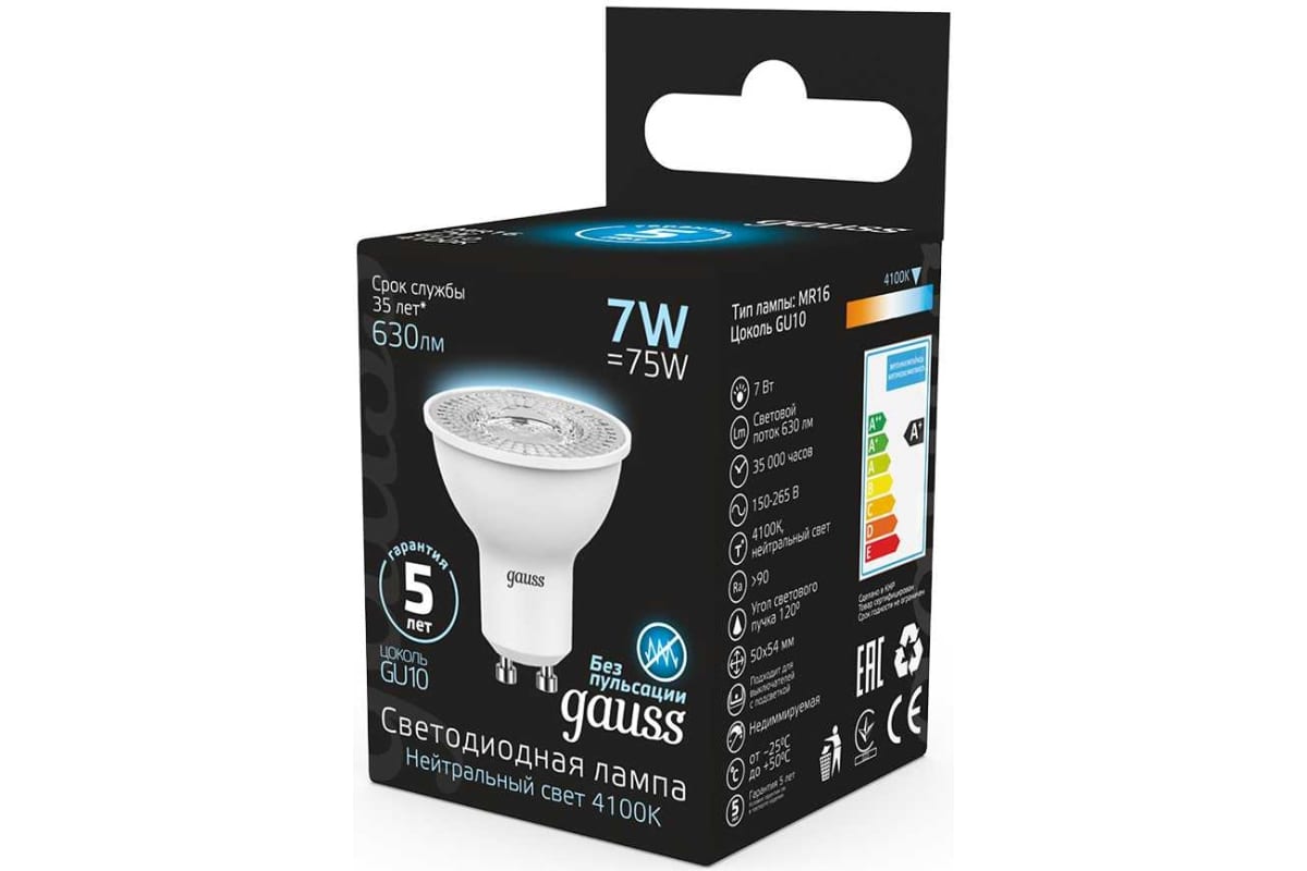 Технические характеристики Gauss LED MR16 GU10 7W 4100K 101506207