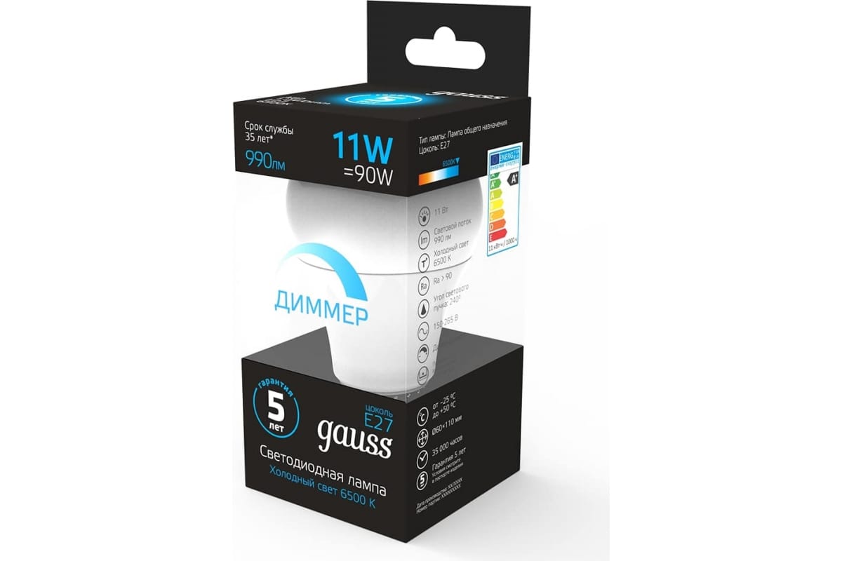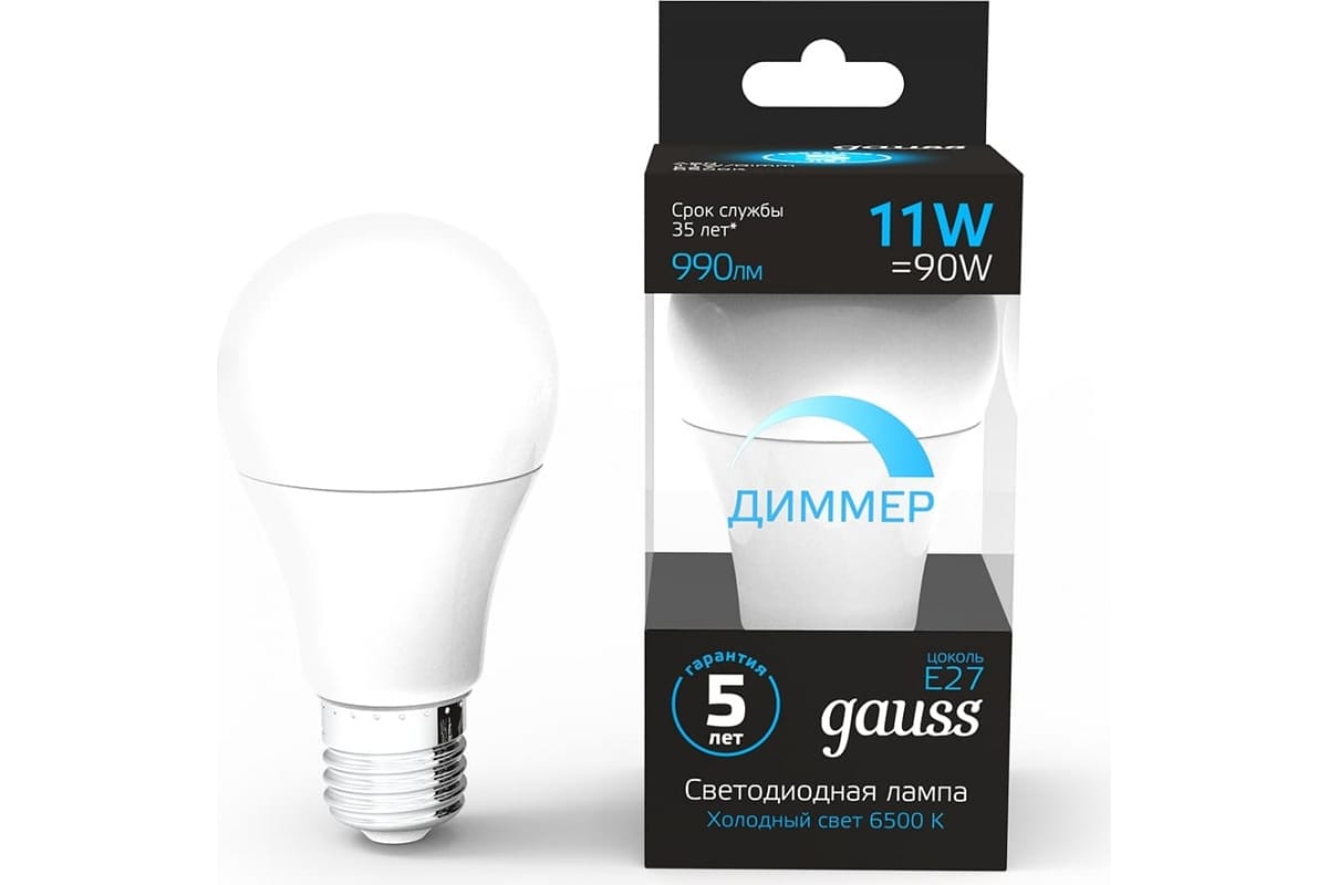 Диммируемая лампа Gauss A60 11W 990lm 6500К E27 LED 1/10/50 102502311-D - надежный источник освещения высокого качества.
