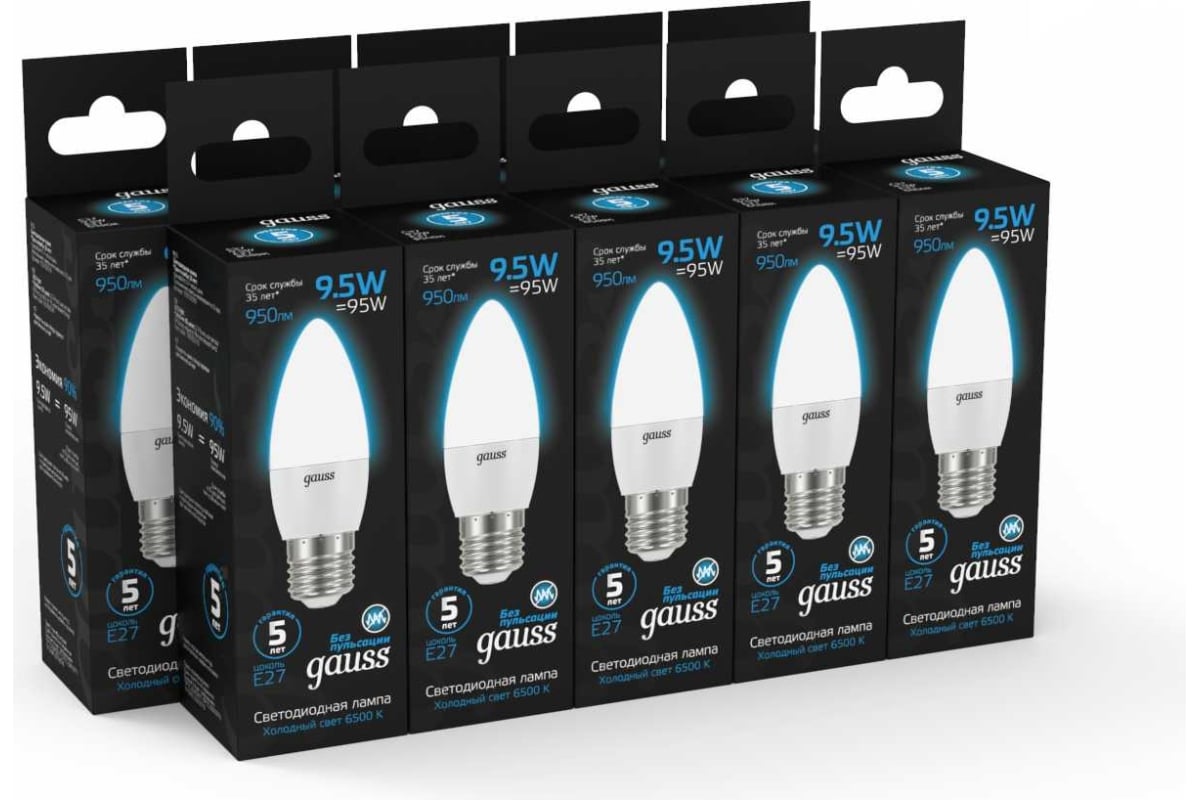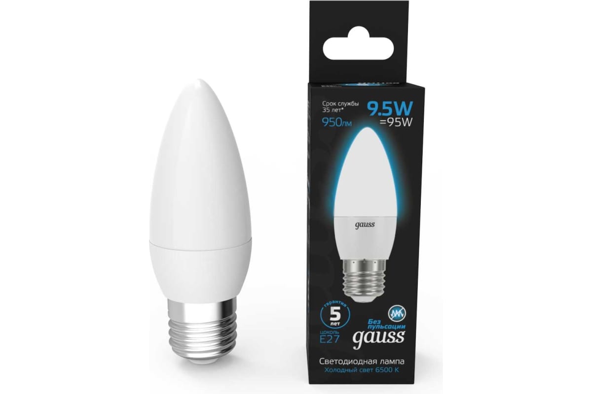 Технические характеристики Gauss Свеча 9.5W 950lm 6500К E27 LED 103102310
