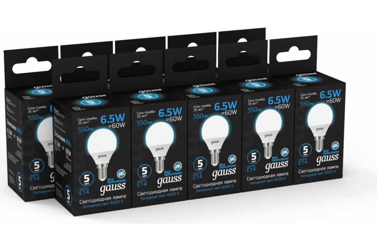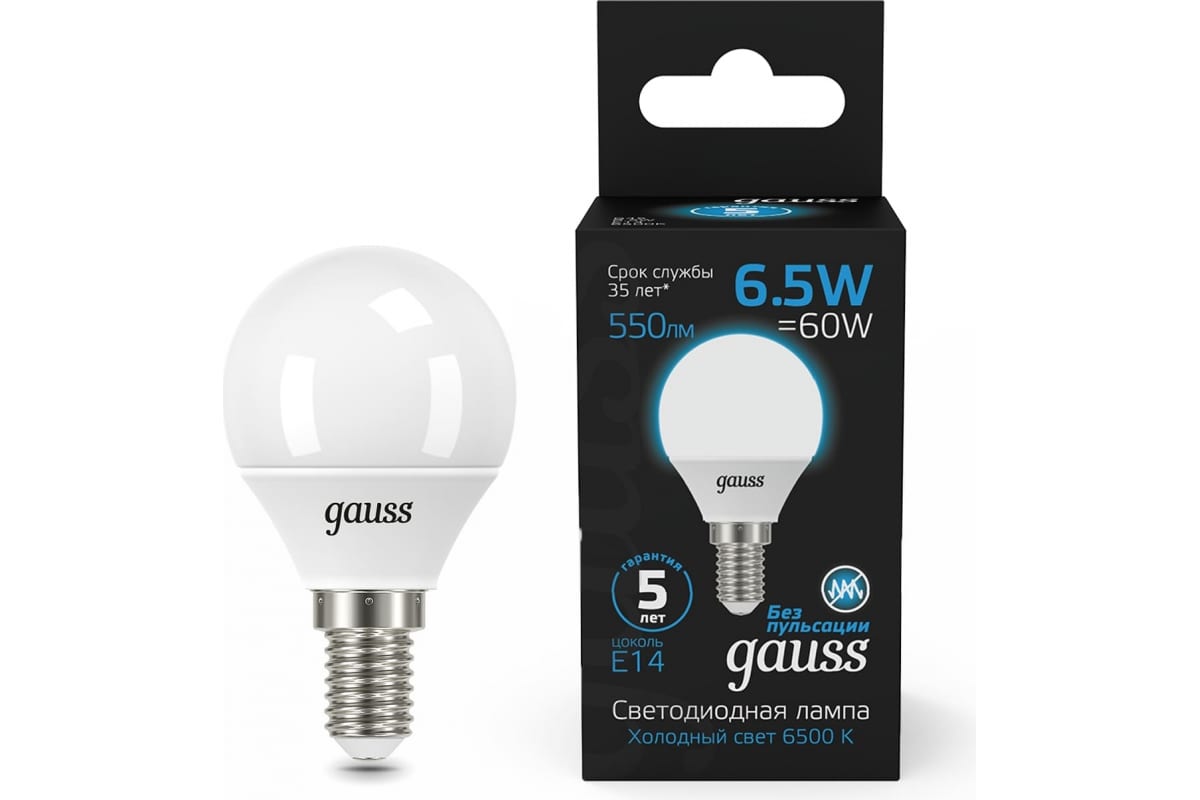 Технические характеристики Gauss Шар 6.5W 550lm 6500K E14 LED 105101307