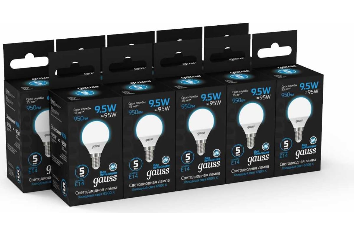Технические характеристики Gauss Шар 9.5W 950lm 6500K E14 LED 105101310