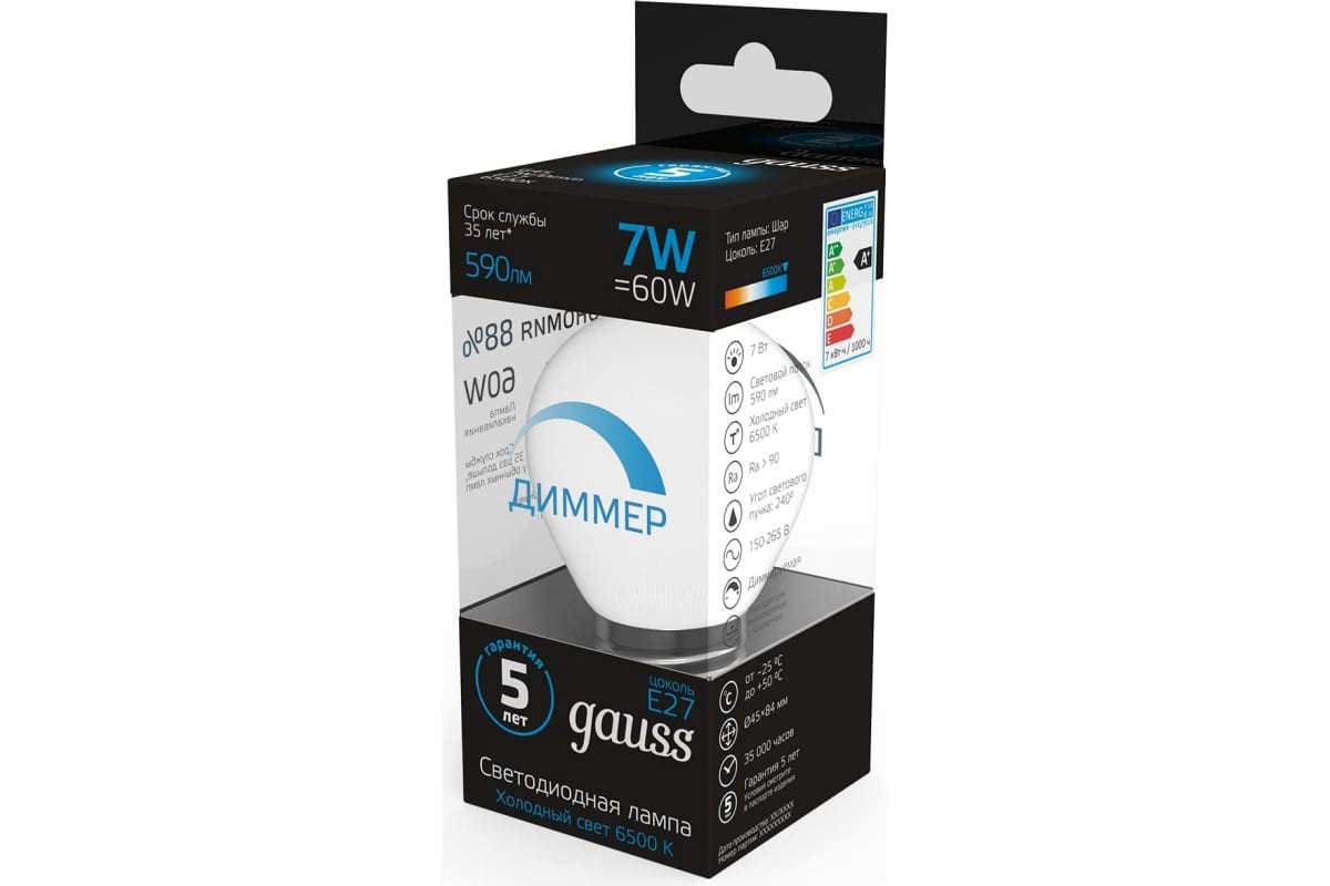 Технические характеристики Gauss LED Шар 7W 590lm 6500К E27 105102307-D