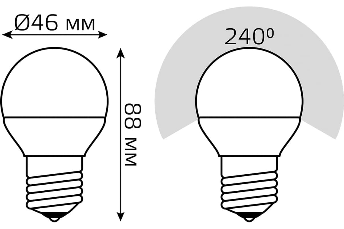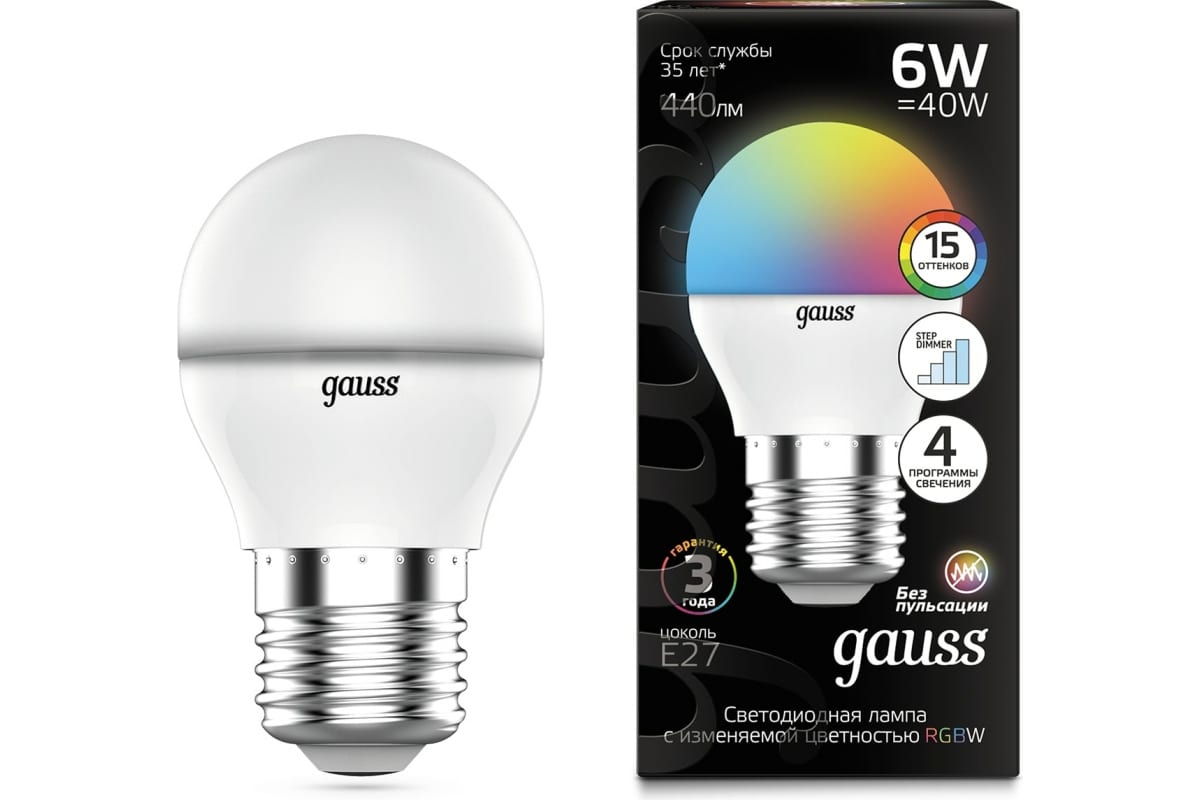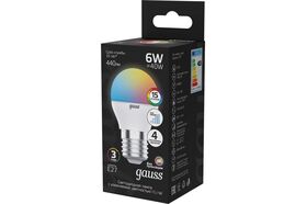Технические характеристики Gauss Шар G45 6W E27 RGBW+димирование LED 105102406