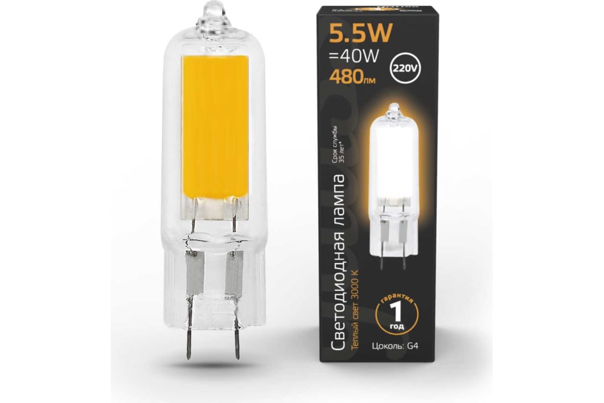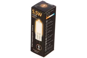 Лампа Gauss LED G4 AC220-240V 5.5W 480lm 3000K Glass 107807105 - отличная замена для стандартных галогенных ламп. Применяется в декоративных люстрах, в специальных и точечных светильниках. Помимо бытового применения, такие лампы могут быть использованы для украшения витрин и вывесок, а также предметов искусства. Благодаря приятному свету и отсутствию эффекта пульсации, свет таких ламп равномерно распределяется и обеспечивает достаточную яркость для освещения даже большого помещения.