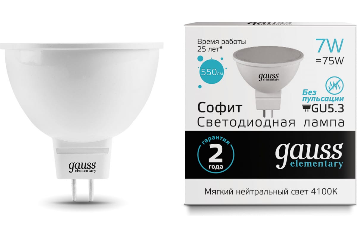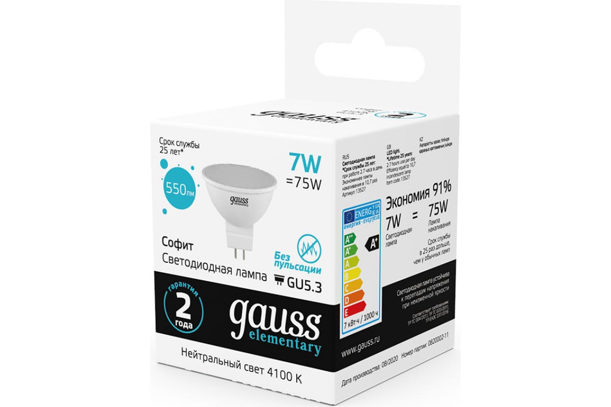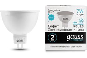 Технические характеристики Gauss LED Elementary MR16 GU5.3 7W 4100K 13527