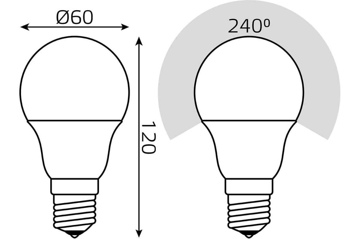 Технические характеристики Gauss LED A60 10W E27 930lm 2700K 4100K 102502110-T