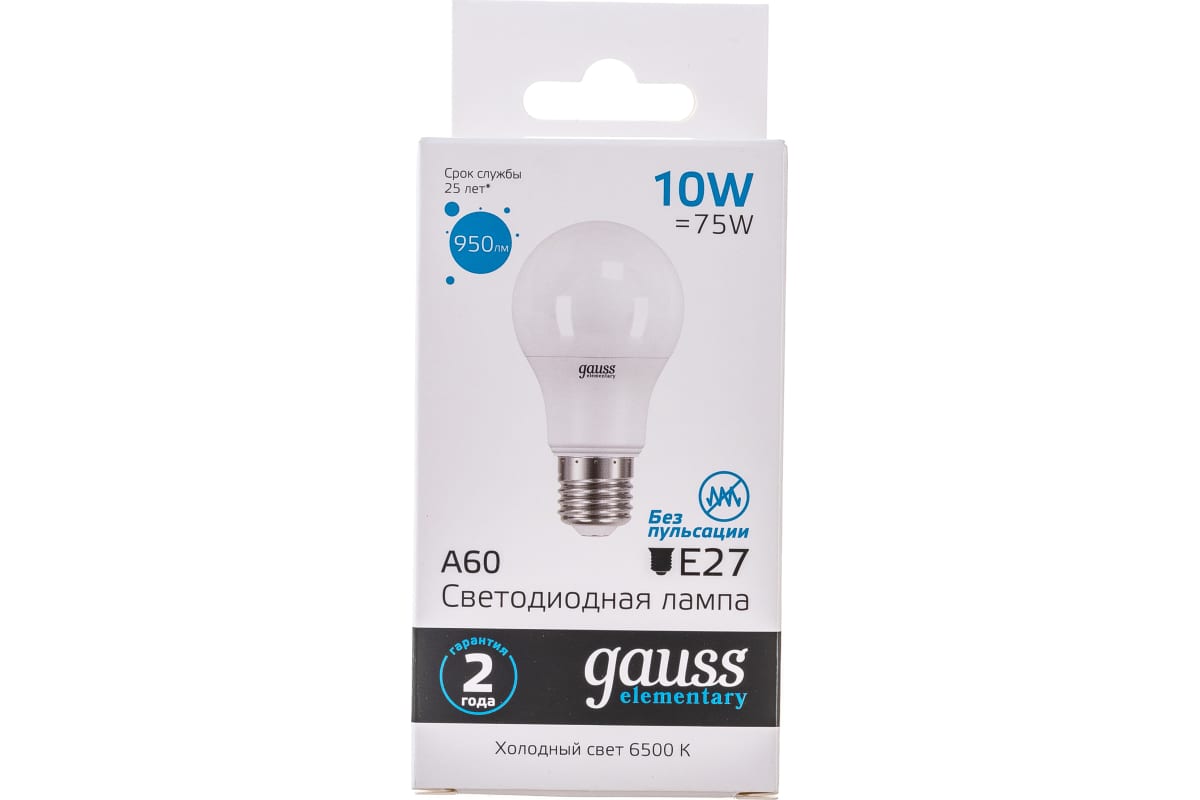 Лампа Gauss LED Elementary A60 10W E27 950lm 6500K 23230 является энергосберегающей заменой обычным лампам накаливания. Равномерное распределение света создает зрительный комфорт в любом помещении.