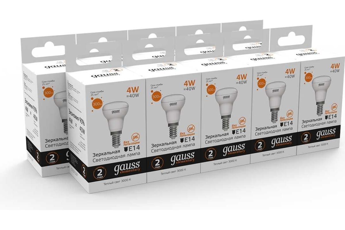 Лампа Gauss Elementary R39 4W 300lm 3000K E14 LED 63114 - это отличная замена ламп накаливания и компактных люминесцентных ламп форм R39, R50, R63. Благодаря направленному световому пучку такие лампы помогают создать красивое, акцентное освещение. Спектр применения весьма широк: они прекрасно подойдут для любых типов потолков, для светильников направленного света и точечной подсветки.