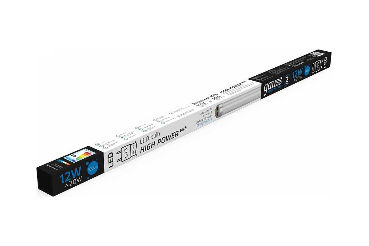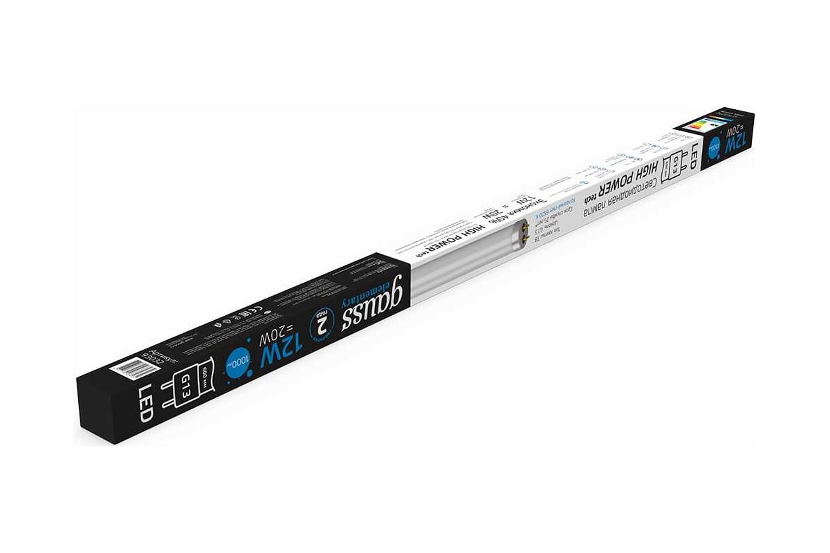 Лампа GAUSS Elementary T8, 12W, 1000lm, 6500K, G13, 600mm, стекло, LED, 1/20 93032 - выгодная замена стандартных люминесцентных ламп. Лампа имеет нормативную длину и без специальных доработок заменит люминесцентные лампы, поскольку устанавливается в стандартные светильники с патроном G13.