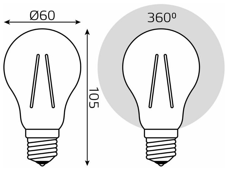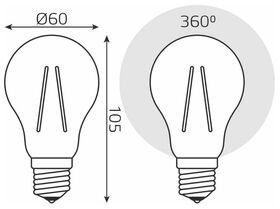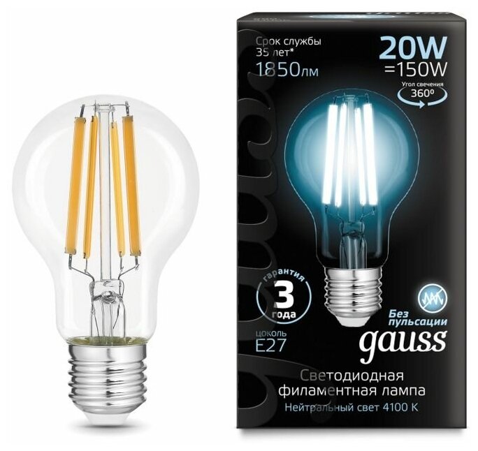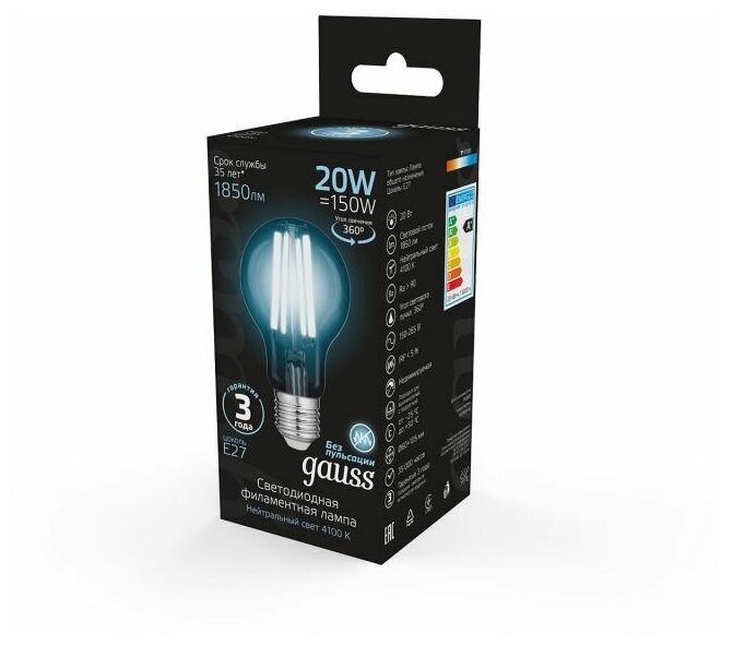Технические характеристики Gauss Filament А60 20W 1850lm 4100К Е27 LED 102902220