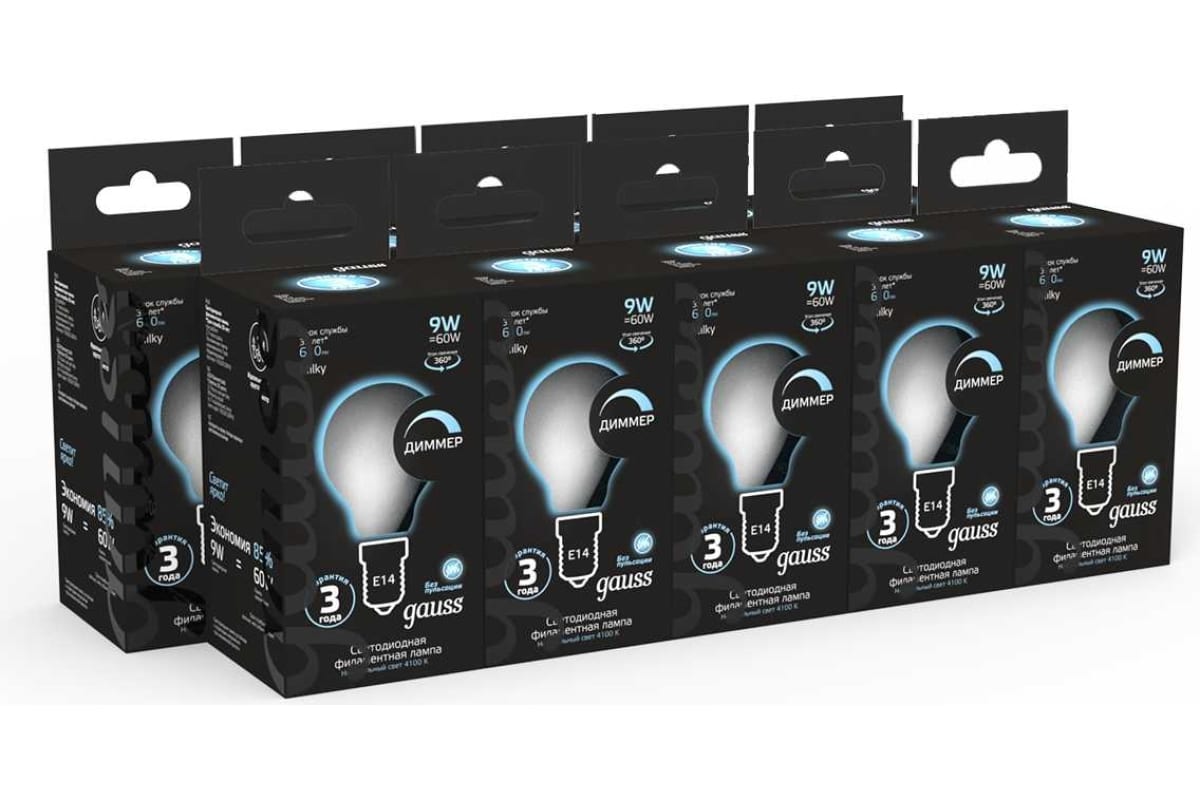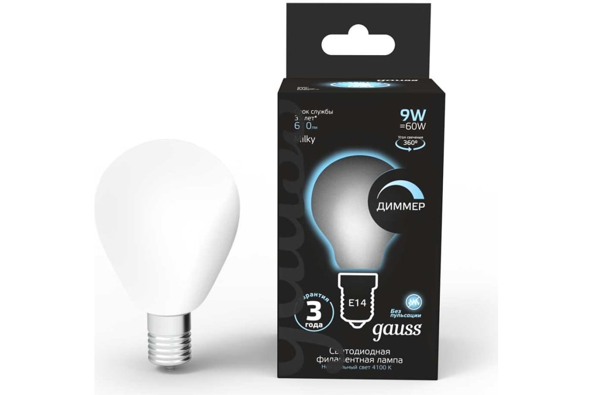 Технические характеристики Gauss Filament шар, 9W, 610lm, 4100К, Е14, milky, LED 105201209-D