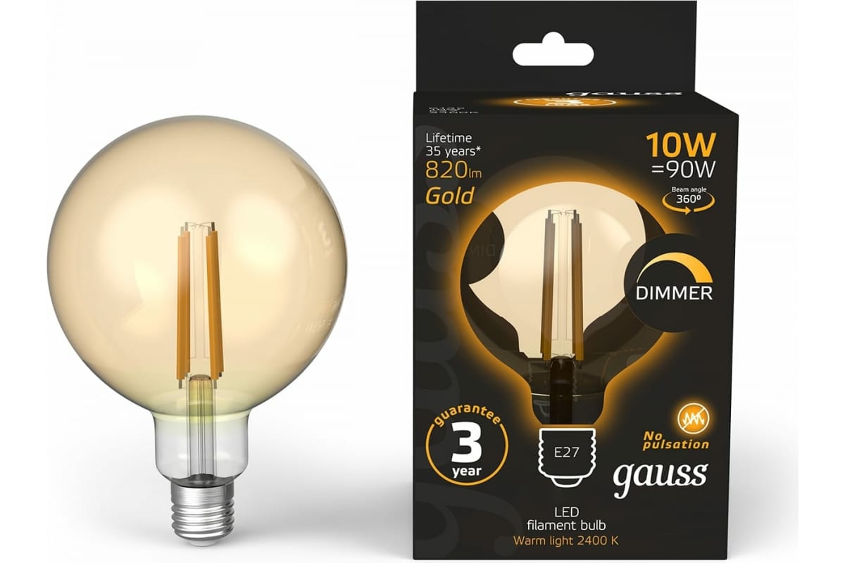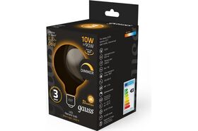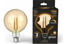 Диммируемая лампа Gauss Filament G125 10W 820lm 2400К Е27 golden LED 1/20 158802010-D с возможностью регулировки яркости. Лампа пользуется большим спросом в различных сферах применения. В первую очередь в сегменте HoReCa, а также в бытовом и коммерческих сегментах. Регулировка яркости ламп позволяет не только создать нужную атмосферу в помещении, но и экономить на расходе электроэнергии.