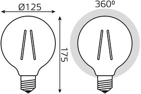 Технические характеристики Gauss Filament G125 10W 820lm 2400К Е27 golden LED 158802010-D