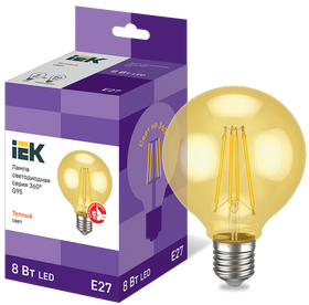 Лампа светодиодная IEK G95 шар золото 8Вт 230В 2700К E27 серия 360
