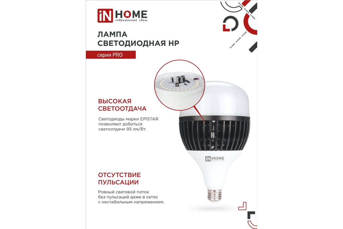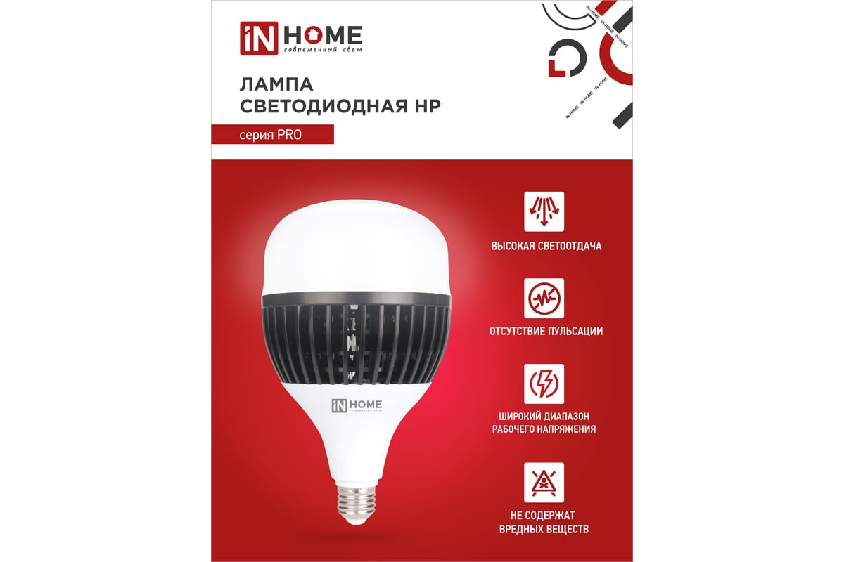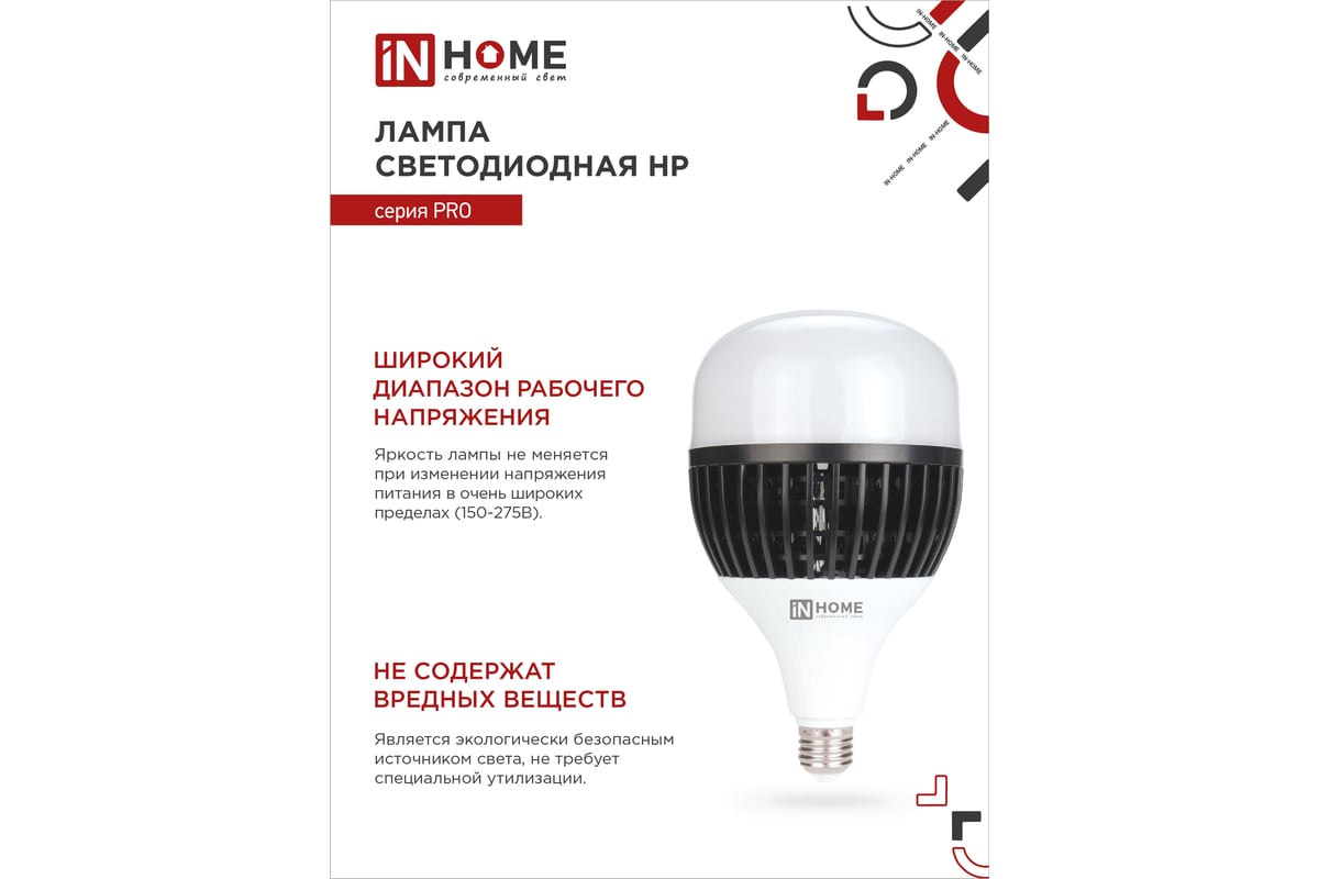 Технические характеристики IN HOME LED-HP-PRO 150Вт 230В E27 с адаптером Е40 6500К 14250Лм 4690612035703