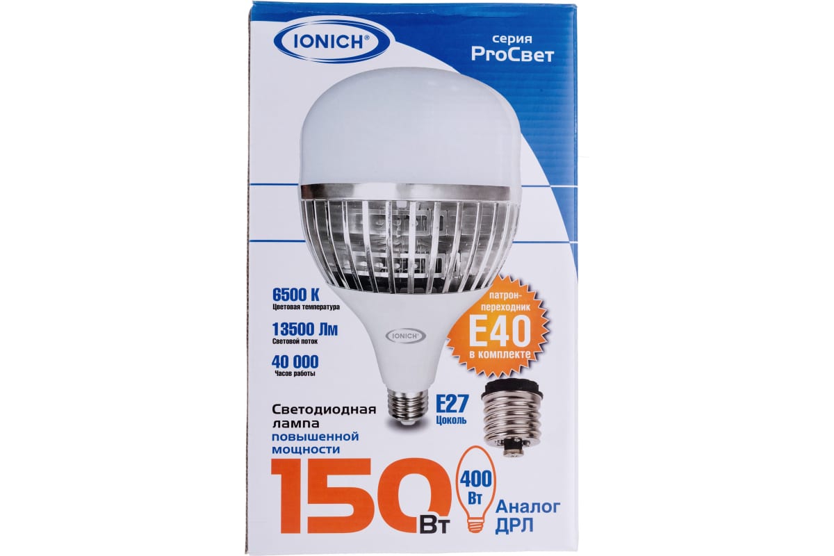 Светодиодная лампа высокой мощности IONICH ILЕD-SMD5730-Т178"ProСвет"-150-13500-220-6,5-Е27/E40 1820 прочная, не боятся падения с высоты человеческого роста, встрясок и вибраций. Обеспечивает безопасный свет и комфорт при эффективном использовании ресурсов.