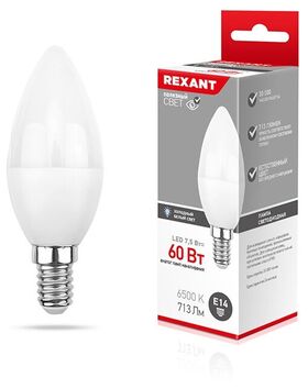 Технические характеристики REXANT Свеча, 7.5Вт, E14, 713Лм, 2700K, теплый свет 604-017