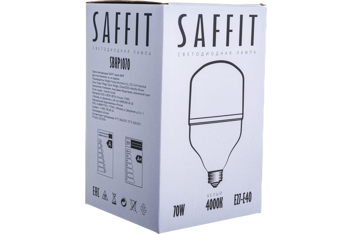 Светодиодная лампа SAFFIT SBHP1070 70W 230V E27-E40 4000K 55098 широко используется для освещения производственных площадей. Обеспечивает яркое и качественное свечение без мерцания. Благодаря более продолжительному рабочему ресурсу, экологичному исполнению и безопасности для человеческого здоровья лампа станет прекрасной заменой устаревшим моделям ламп ДНАТ и ДРЛ.
