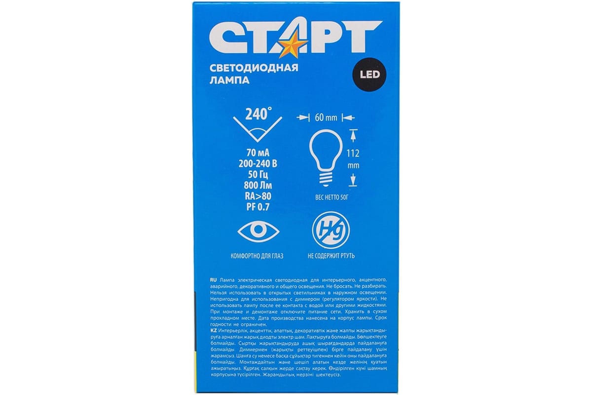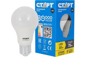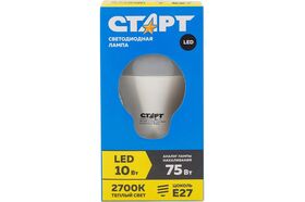 Светодиодная лампа СТАРТ LEDGLSE27 10W30 применяется для полноценного освещения помещений. Безопасное изделие не содержит ртуть и прочие отравляющие вещества, работает без инфракрасного и ультрафиолетового излучения. Классическая форма колбы и цоколь Е27 идеально подходят для установки в стандартные светильники открытого типа.