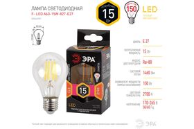 Лампа ЭРА FLED A6015W827E27, филамент, груша, 15Вт, тепл, Е27 10/100/1500 Б0046981 - лампа премиального сегмента. Максимально похожа на лампу накаливания, может использоваться в дизайнерских интерьерах. Угол рассеивания светового потока: 360 градусов. Совместима с выключателями с подсветкой.