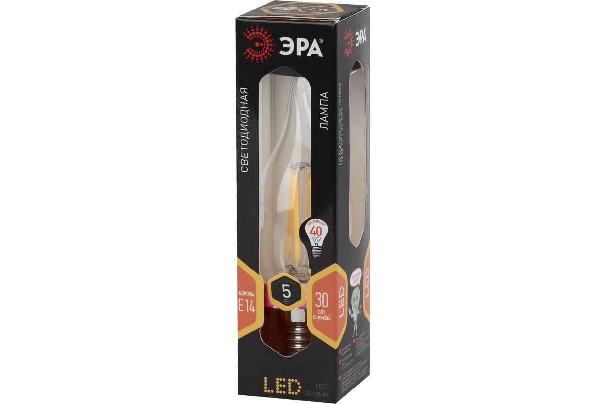 Технические характеристики ЭРА F-LED BXS-5W-827-E14 филамент, свеча на ветру, 5Вт, E14 Б0043436