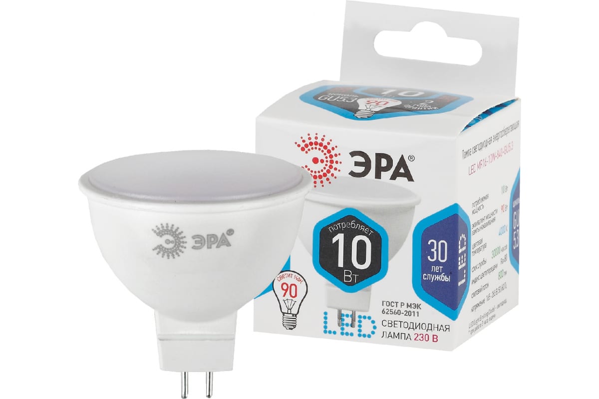 Технические характеристики ЭРА LED MR16-10W-840-GU5.3 диод, софит,нейтр Б0032996