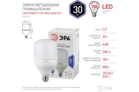 Светодиодная лампа ЭРА STD LED POWER T100-30W-6500-E27 E27/Е27 30 Вт колокол холoдный дневной свет, Б0027004 для освещения производственных, торговых и подсобных помещений. Отличается высокой мощностью, грамотно продуманной системой охлаждения и широким выбором цветовых температур