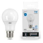 Лампа Gauss Elementary (23237A) светодиодная 7Вт цок. E27 груша 220B 6500K св.свеч.бел.хол. A60 (упак. 10шт)
