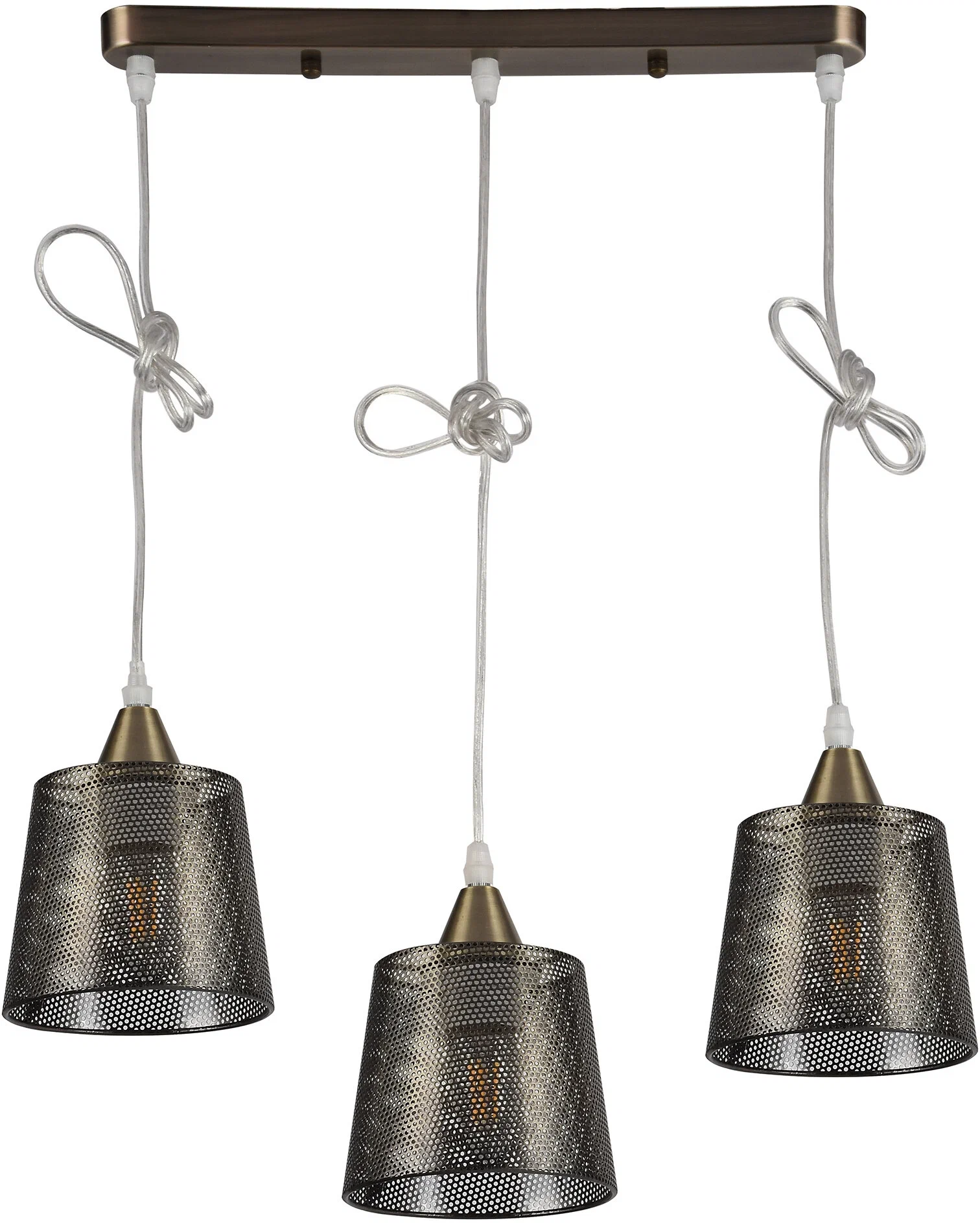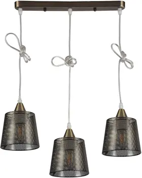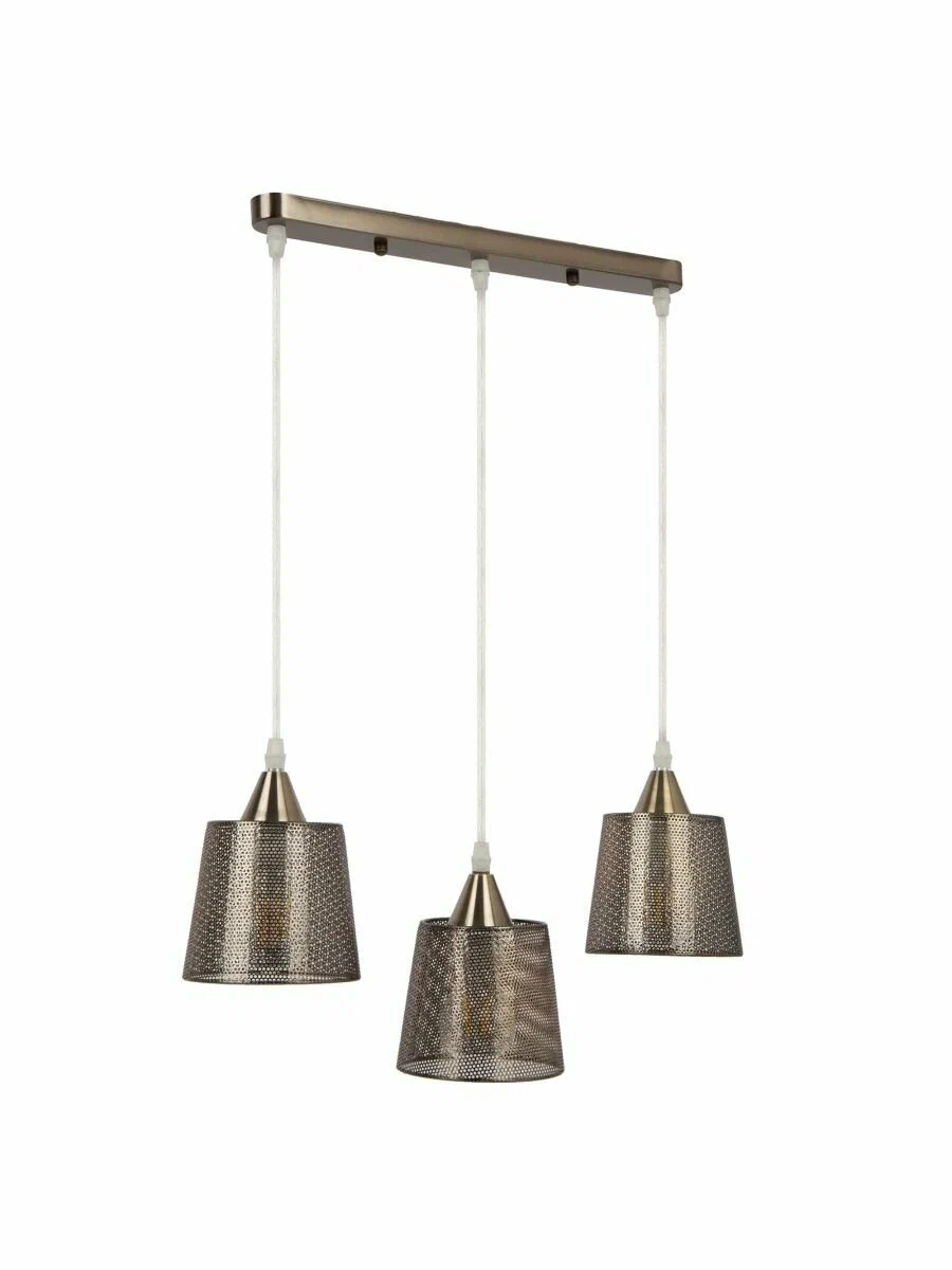 Подвесной светильник Wink H229-3 от английской фабрики Hiper украсит гостиную, прихожую и коридор, спальню, кухню, зону над обеденным столом и кухонным островом, кабинет, зал в стиле современный, кантри, лофт. Материал изготовления — металл, цвет бронза. 3 плафона из металла с цоколем E27 и мощностью ламп 180W, площадь освещения составляет до 9 кв. м. Питание от сети 220V. Технические особенности: регулировка высоты. Монтаж производится на пластину. Габариты: длина — 50 см, ширина — 13 см, высота — 12 см.