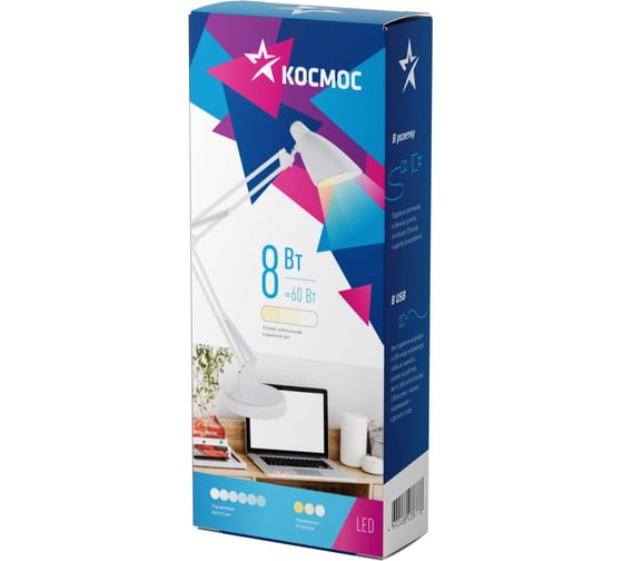 Настольная диммируемая лампа КОСМОС 8Вт, RA80, 3 режима цветности, Белый, 5В, 2А KOC_DESK037 - удобная базовая модель светодиодной лампы в классическом, привычном корпусе. Отличный выбор для детской или домашнего офиса.