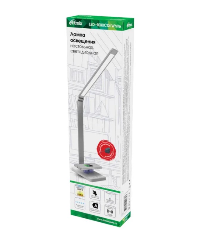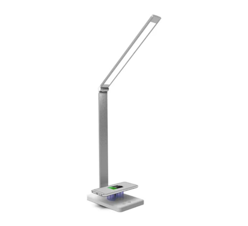 Лампа освещения настольная, светодиодная с беспроводной Qi зарядкой 10Вт (для смартфонов), регулировкой цветовой температуры, яркости и таймером авто выключения. Удобные сенсорные кнопки, выход USB зарядки 2А. Модель идеально подходит для учёбы и работы.