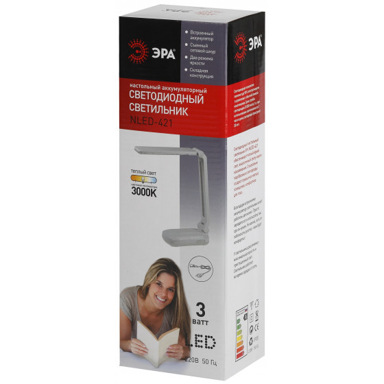 Настольная лампа ЭРА NLED-421-3W-W белый