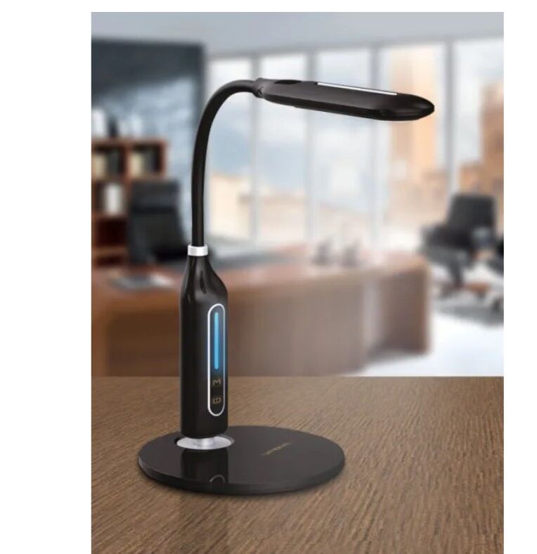 Настольная светодиодная лампа с сенсорным управлением, тремя режимами цветовой температуры (2700-3000К, 4000-4500К, 6000-6500К). Кроме того, настольный светильник диммируется - регулируется яркость свечения.