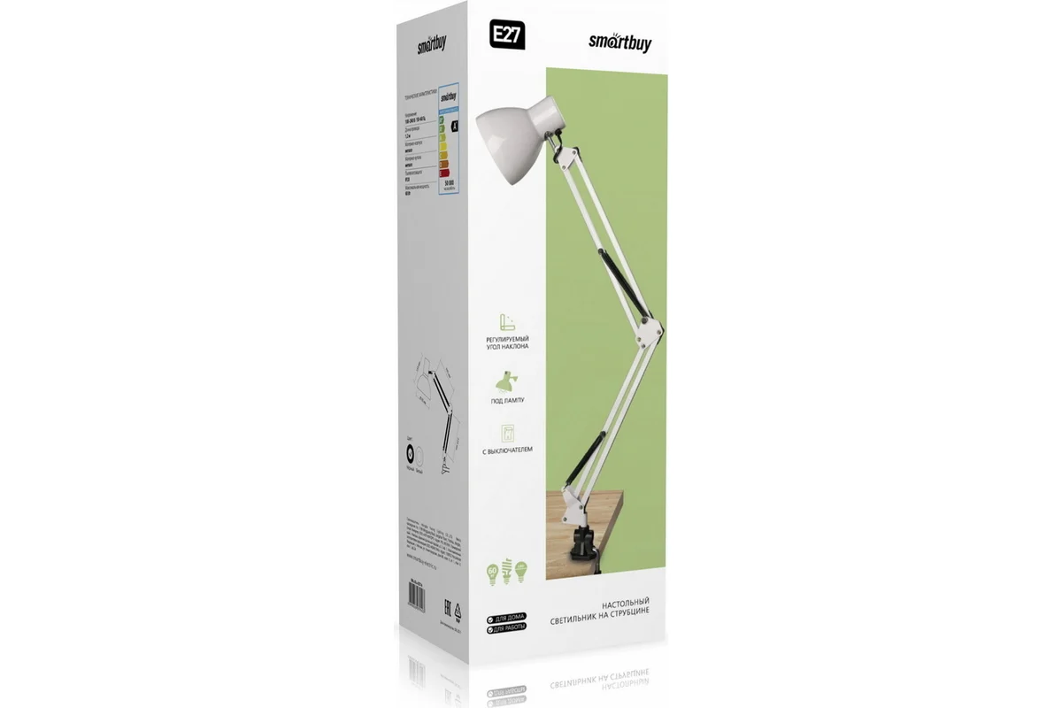 Технические характеристики Smartbuy под лампу E27 на струбцине, белый SBL-DLc-E27-w