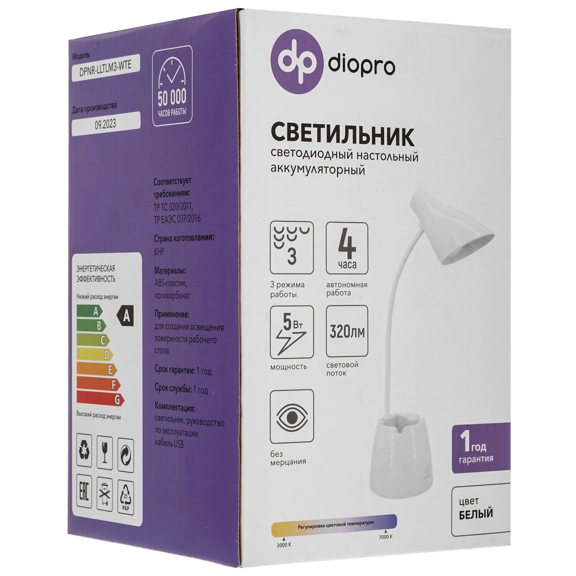 3 режима работы, время автономной работы 4 часа, емкость аккумулятора 1200 мА*ч, ещё